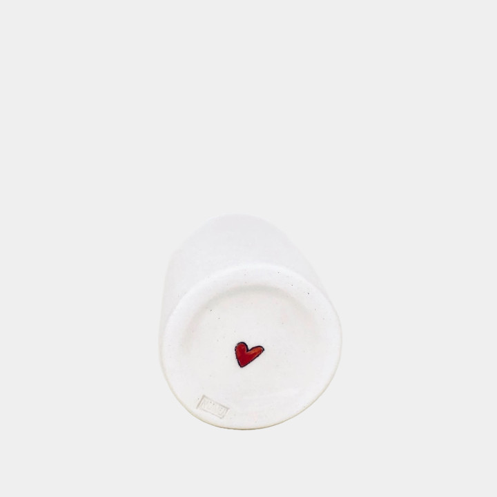 Minden termék egyesével korongolva készül, Nünü kézzel festi rá a kedves mintákat, humoros feliratokat, így nincs két egyforma darab, két egyforma minta. 1070°C-on égeti ki őket.