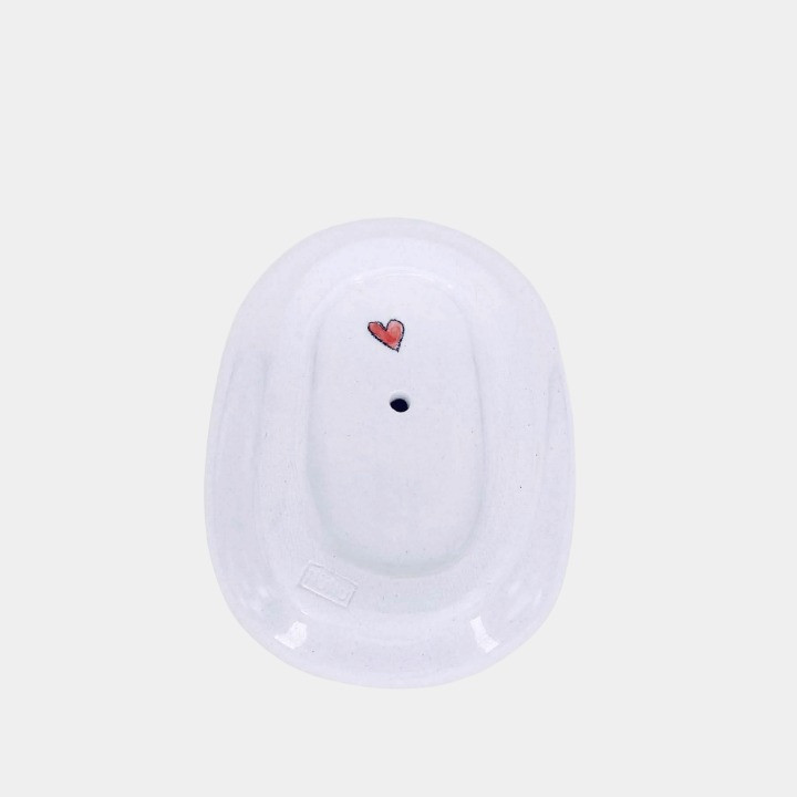 Minden termék egyesével korongolva készül, Nünü kézzel festi rá a kedves mintákat, humoros feliratokat, így nincs két egyforma darab, két egyforma minta. 1070°C-on égeti ki őket.