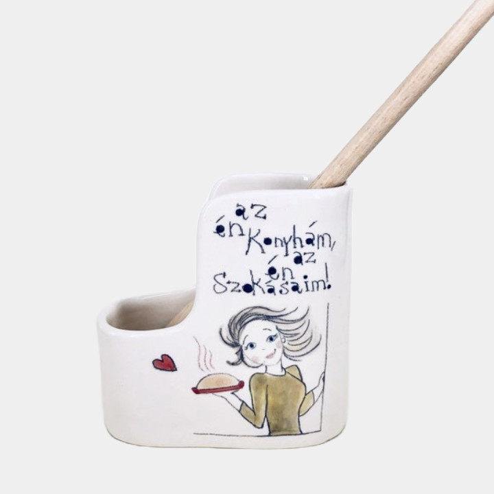 Kézműves kerámia fakanáltartó