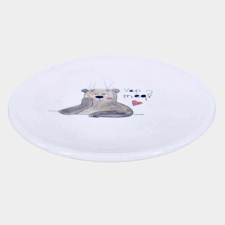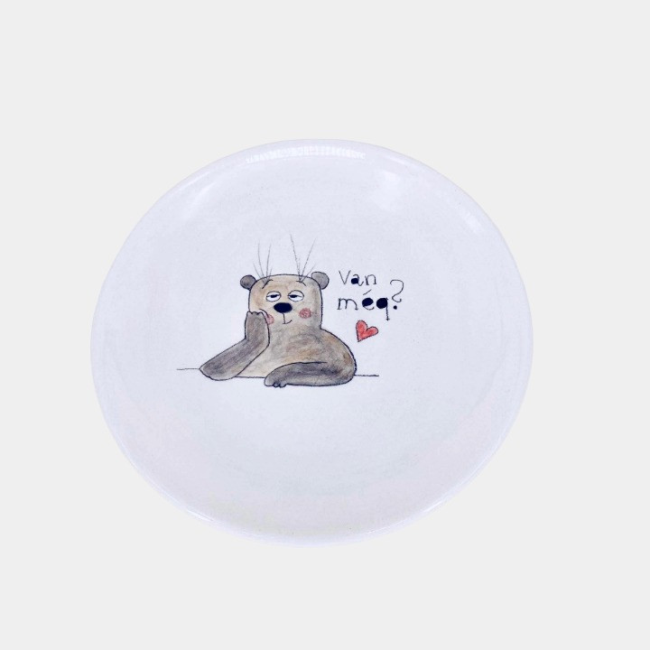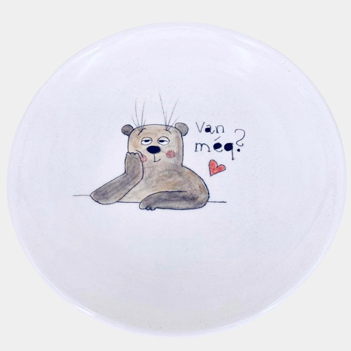 Kézzel készített és festett reggeliző tányér, macis mintával és kedves felirattal.