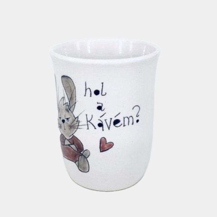 Kézzel készített és festett bögre, nyuszis mintával és kedves felirattal.