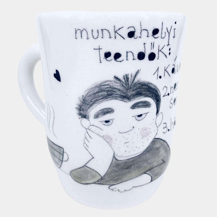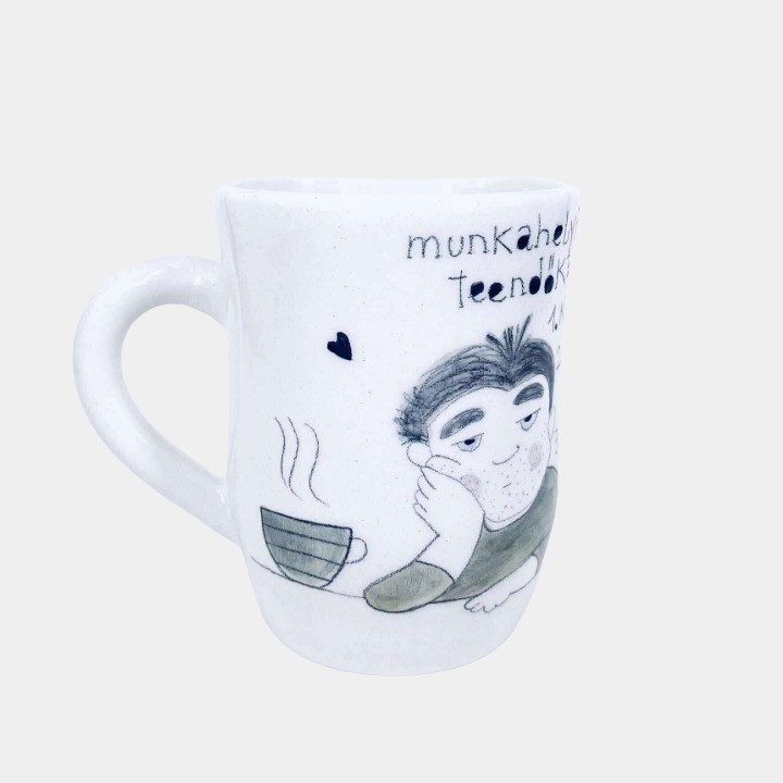 Kézzel készített és festett bögre, pasis mintával és vicces felirattal.