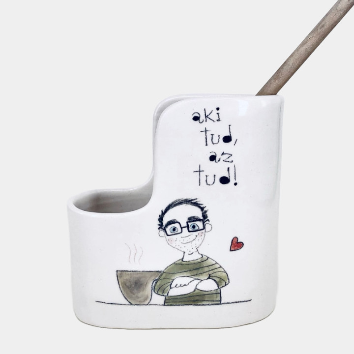Kézzel készített és festett fakanáltartó, pasis mintával és vicces felirattal.