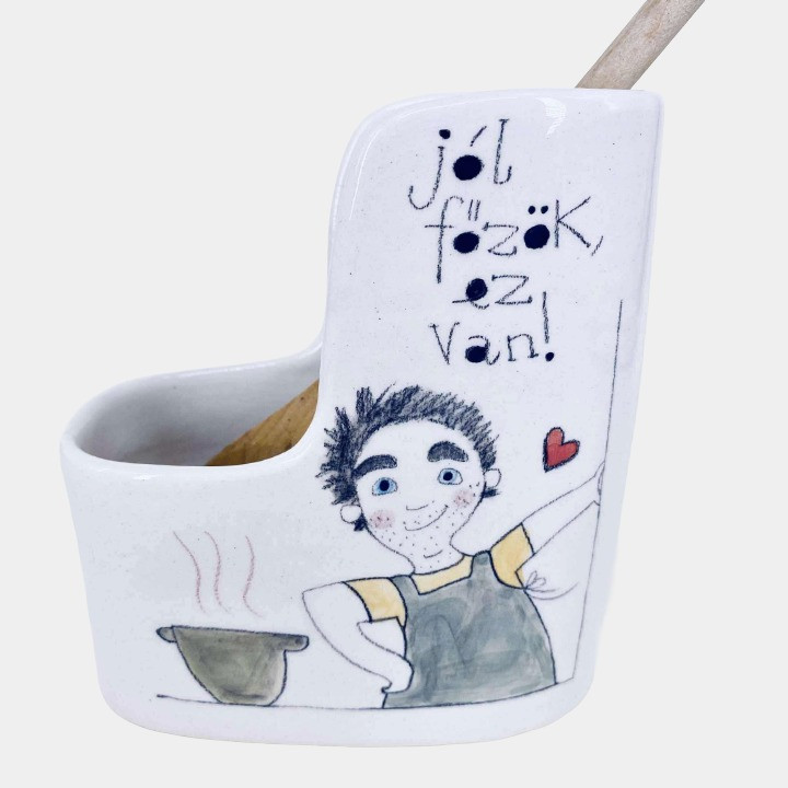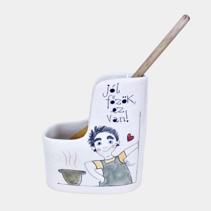 Kézműves kerámia fakanáltartó