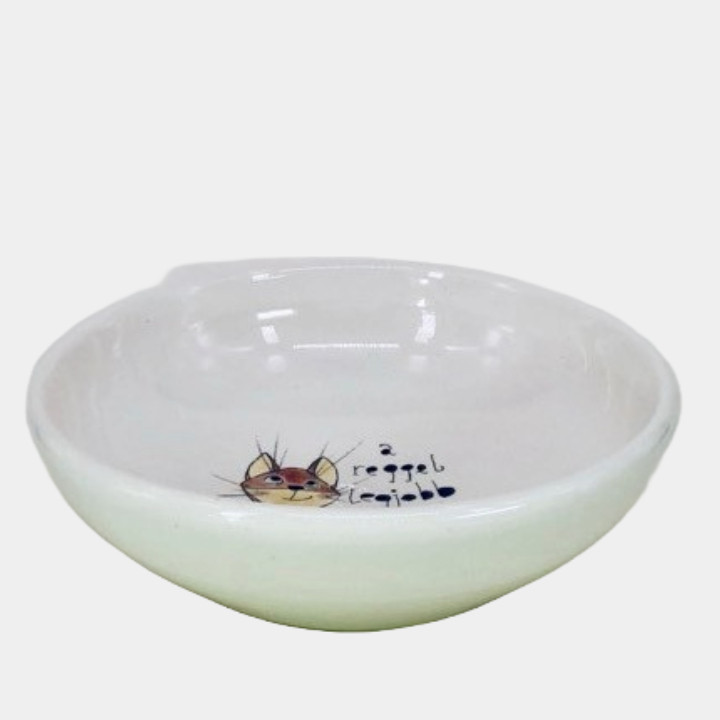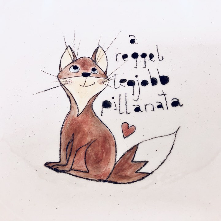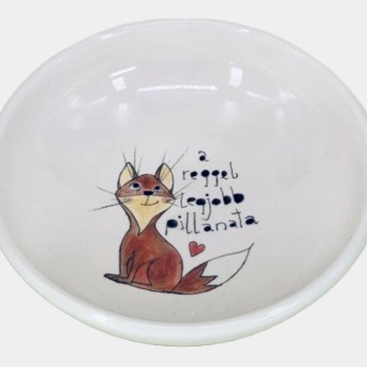 Kézzel készített és festett mélytányér, rókás mintával és kedves felirattal.