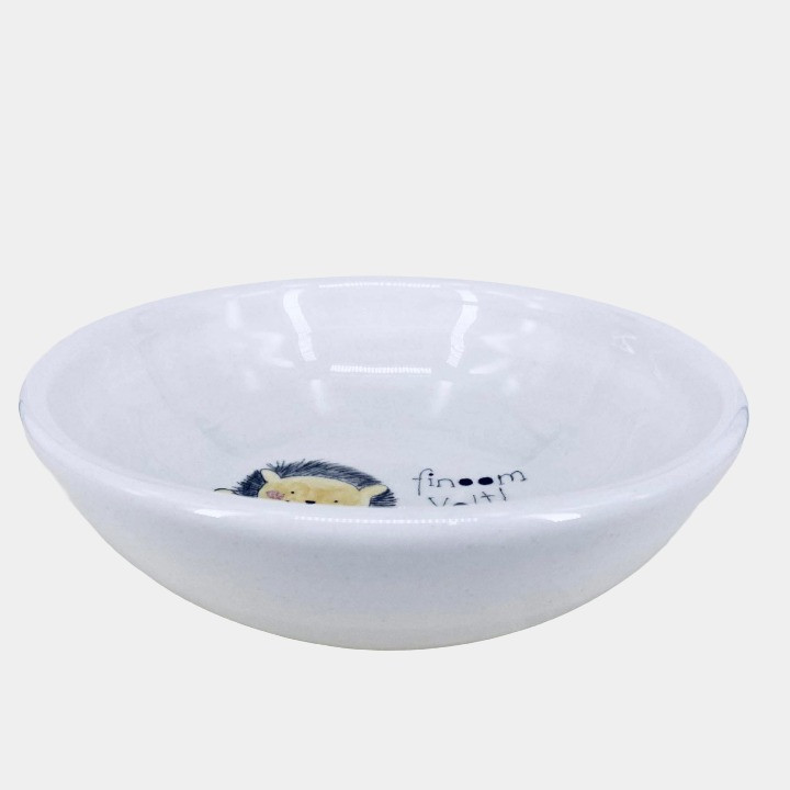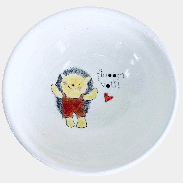 Kézzel készített és festett mélytányér, sünis mintával és kedves felirattal.