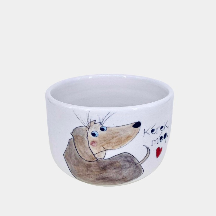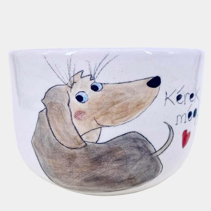 Kézzel készített és festett müzlis tál, tacsis mintával és kedves felirattal.